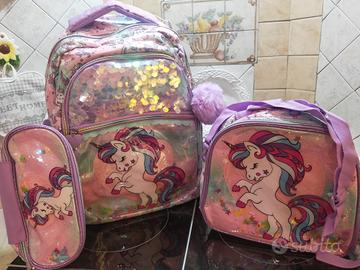 Set da 3 Zaini per ragazze in paillettes, con borsa pranzo e astuccio, carini, per la scuola elementare