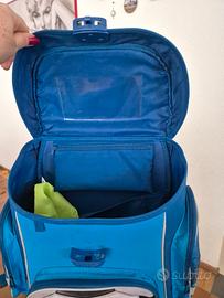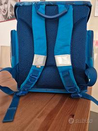 Zaino per la scuola, bretelle schiena rinforzato, imbottito per la schiena, 3 cerniere esterne e uno interno. Regalo anche piccolo astuccio porta penne morbido. Abbinato con logo calcio.