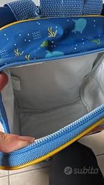 Come da descrizione zaino Scuola per bimbo con rotelle e porta merenda termico come nuovi. Mai usato.