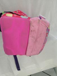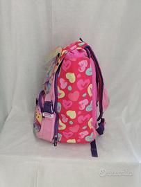 Seven Sj gang facce girl zaino estensibile tramite zip laterale a doppio scomparto. li in materiale "glitter sfumato", sollevabili tramite sistema ad aria attivabile dallo spallaccio con pulsante e applicazione in raso su pattina. Tasca frontale. Tasca su pattina. Spallacci imbottiti e rivestiti in tessuto a rete traspirante con una maniglia per sollevarlo. Zip rinforzate per resistere anche alle sollecitazioni più forti. Lo zaino presenta 2 scomparti per mantenere ordinati gli oggetti scolastici. La prima destinata a libri e quaderni più ampia e spaziosa una seconda che si allarga aprendo le zip laterali per gli accessori come astuccio o rotolo o piccoli oggetti. Inoltre, sono davvero comodo da indossare sulle spalle, grazie a schienale e spallacci confortevoli. In più, il fondo integrato mantiene la struttura inalterata, garantendo la stabilità del contenuto anche a pieno carico. In buone condizioni generali, solo il fondo un pò consumato.