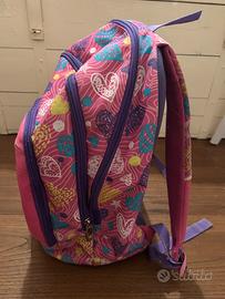 Zaino ampio scuola Seven a tre tasche, paillettes a disgeno intercambiabile (cuore e LOVE). Trolley separato con 6 rotelle