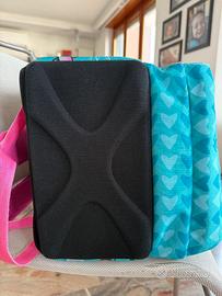 Zaino scuola Seven, colore turchese e fucsia. Non più utilizzato causa passaggio sa scuola primaria a scuola secondaria, ma è tenuto benissimo. Appena lavato, sembra nuovo, no difetti, no parti rovinate o rotte. Cerniera laterale dx e sin per allargare la capienza interna. Tasca superiore, tasca inferiore e piccolo taschino inferiore frontale. Bello, comodo, capiente e funzionale. La marca Seven è valida.