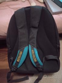 Vendo zaino per scuola marca Seven con scomparto anteriore e posteriore, due tasche laterali e una piccola tasca superiore dotata di foro di uscita per il cavo dello smartphone. Spallacci regolabili. Il prezzo è trattabile perchè, come si vede dalla seconda foto, la cerniera dello scomparto anteriore è rotta sul lato destro.