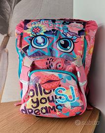 Caratteristiche: Zaino doppio scomparto estensibile tramite zip laterali. Fantasia allover e stampa posizionata, fibbie e cursori personalizzati. Flip System: 3 pattine calamitate con grafiche diverse.