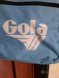 Zaino Scuola colore celeste con scritta Gola, varie tasche bello capiente, ottime condizioni generali.