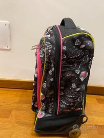 Zaino trolley Seven 7.1 nero con ricami fucsia per ragazze. Usato con piccoli segni di usura.