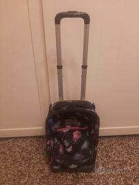 zaino Seven assai capiente con carrello a altezze regolabili per ragazze. Usato ma molto ben tenuto. Possibile asportare carrello e adoperare lo zaino anche indipendentemente.