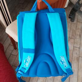 Zaino scuola elementare molto capiente SJ Gang BluDragon, con due divisori all'interno molto utili e ai lati esterni le cerniere per aumentare il volume, ben imbottito lo schienale e le bretelle..usato ma tenuto bene..