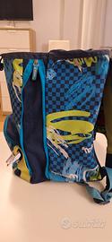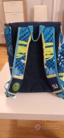 Vendesi Zaino SJ estensibile, con pattina superiore cambiabile, doppio scomparto spazioso di cui aumentare la capienza con zip laterali. Schienale e spallacci confortevoli.