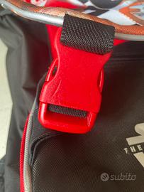 Zaino scuola di "Star Wars". Tasca anteriore con zip, spallacci e schienale imbottiti, immagine double face sostituibile con zip. Telescopico: aumenta la capienza di quasi il doppio grazie alle due cerniere laterali. Tasca interna con zip e divisorio interno. Usato solo due volte, praticamente nuovo (vedi foto).