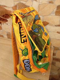 Vendo zaino originale Ninja Turtles come da foto, buone condizioni. Tasche con cerniera e fibbie perfettamente funzionanti. telo anti pioggia incluso. Spallacci e fondo imbottiti.