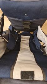Zaino portabimbi da trekking in montagna, marca BREVI Adventure Smart Life, colore blu, completamente imbottito e confortevole sia per il genitore che per il bimbo. Telaio in alluminio molto robusto e leggero, completo di parapioggia. In perfette condizioni , usato pochissimo, vendo per inutilizzo.