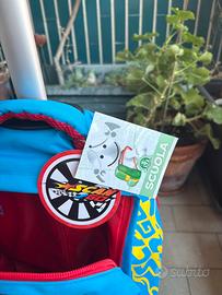 Zaino trolley da bambino, rosso e azzurro. Marca Giochi Preziosi, nuovo con cartellino.