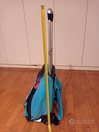 trolley di Cars con manico estraibile, base in plastica molto resistente, doppio scompartimento all'interno, tasca davanti e tasca sulla battola. misure circa cm 30 x 20 x 40 + manico.