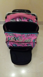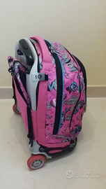 Zaino marca SEVEN, molto capiente, con tre scomparti separati, apribili con robusta cerniera. Dotato di trolley originale (possibilità di staccarlo dallo zaino) con manico regolabile in altezza su due posizioni, molto scorrevole e robusto. Lo zaino ha ampi spallacci, è resistente ed impermeabile, intatto e senza segni di usura. E 40