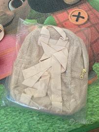 Zainetto bambina bambino effetto pelo pecora morbido color panna con spalline beige, con cerniera. Nuovo ancora confezionato, quello dimostrativo è un secondo pezzo mio. Ottima idea regalo o per asilo nido / scuola infanzia (Misure 30x20×10 cm)