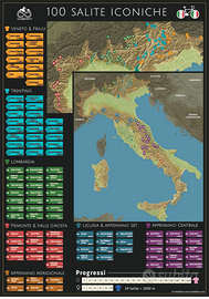 Presenta una mappa topografica dettagliata con 100 salite raggruppate per regione: