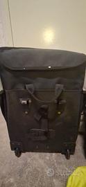 una praticissima con attacchi per portapacchi e rotelle e maniglia per diventare trolley. capiente e perfetta come nuova. fantastica per fare la spesa. l'altra classica laterale di Decathlon. compreso un cappuccio giallo antipioggia.