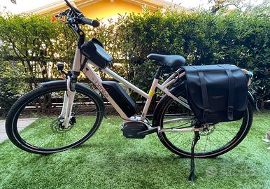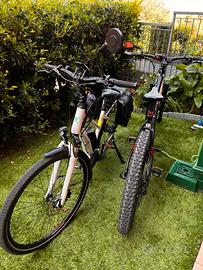 Vendiamo coppia di E-BYKE elettriche BRINKE : Una X1R+ BRINKE BIANCO NERA , Front ammortizzata all’ anteriore ROCKSHOC REGOLABILI, con motore shimano 6.200 km circa motore, cambio, Batteria e freni SHIMANO sempre tagliandata dalla BRINKE ultimo in marzo 26 con cambio copertoni, etc. Una grande bici con componentistica Shimano telaio in alluminio.Leggera, potente maneggevole, cannotto sella ammortizzato (Surtner fantastico regolabile) fanalini elettrici, clacson porta cellulare ,ottima autonomia, bicicletta usata solo ciclabili e sterrati leggeri sul garda. L’altra,da TREKKING Bianca MOD . BRINKE RUSHMORE. 2 , sempre Front ammortizzata davanti e sella ammortizzata a soffietto, completa di borse originali sul portapacchi posteriore, con 4.400 km sempre con motore, Batteria, Freni e cambio SHIMANO pero’ AUTOMATICO (facilissimo da usare ed efficiente)ottima autonomia e molto scorrevole e comoda, sempre completa di fanali anteriore e posteriore, cavalletto, copertoni e freni nuovi sempre tagliandata dalla casa BRINKE. Le vendiamo per scarso utilizzo e mancanza di tempo…ideale per una coppia che voglia con meno della spesa di una singola bike averne due …pronte all’uso e in condizioni impeccabili per un usato. Si richiede serietà e disponibili a visione per rendersi conto dello stato eccellente .
