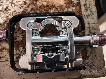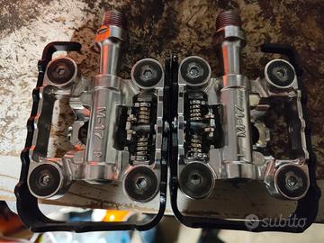 vendo questi 2 paia di pedali , i brn Titanium sono pedali con sistema SPD tipo Shimano. i Wag sono pedali per biciclette da trekking da un lato SPD e dall'altro lato sono flat . tutti e due i pedali sono compatibili con tacchette Shimano .le tacchette Ve le regalo io. li vendo tutti e due. pari al nuovo. Non spedisco.