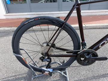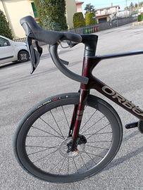 Bici in pronta consegna modello 2024 in taglia 55 Colore Wine Red-Titanium Peso bici 7,36 kg Specifiche Kit telaio Telaio Orbea Orca carbon OMX 2024, monocoque construction, HS 1,5", BB 386mm, powermeter compatible, Rear Thru Axle 12x142mm, thread M12x2 P1, internal cable routing. Forcella Orbea Orca OMX ICR 2024, full carbon, 1-1/8" - 1,5" tappered head tube compatible, Thru axle 12x100mm, thread M12x2 P1. Serie sterzo FSA 1-1/2" Integrated Aluminium Cup Trasmissione Guarnitura Shimano 105 R7100 36x52t with left side 4iiii Powermeter Leve Shimano Di2 R7170 Pignoni Shimano 105 R7100 11-34t 12-Speed Cambio Shimano 105 Di2 R7150 Deragliatore Shimano 105 Di2 R7150 Catena Shimano M7100 Cockpit Manubrio OC Road Performance RP11 Carbon, Reach 80, Drop 125, w/Di2 hole Attacco OC Road Performance RP10, -8º Freni Shimano R7170 Hydraulic Disc Dischi Freno 160mm Front /140mm Rear Ruote Oquo Road Performance RP45LTD Pneumatico Vittoria Corsa N.Ext G2.0 Foldable 700x28c Bloqueo anteriore Orbea Thru Axle 12x100mm M12x2 P1 Lite Bloqueo Posteriore Orbea Thru Axle 12x142mm M12x2 P1 Lite Componenti Reggisella OC Performance XP10-S Carbon, 27.2mm, Setback 20 Sella Fizik Vento Antares R3 Kium Rail 140mm Accessori Nastro per manubrio Lyzard DSP 2.5mm