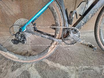 Vendo bellissima bici gravel 3t Exploro Racemax. Taglia 56, adatta per altezze dai 175 ai 185 cm circa. Ruote in carbonio Campagnolo Shamal, gomme Pirelli Cinturato gravel H 40 mm, cambio Campagnolo Ekar 13 velocità (pacco pignoni 9-42, corona 40). Colorazione custom nero/nero opaco/blu brillante realizzata da Tony Spray. Normali segni di usura sul telaio legati all'utilizzo fuoristrada. Ideale per gare gravel o per utilizzo anche su strada con un secondo paio di ruote. Visionabile da subito, disponibile da fine marzo. Possibile spedizione in tutta Italia tramite Cicli Stefanelli (PD)