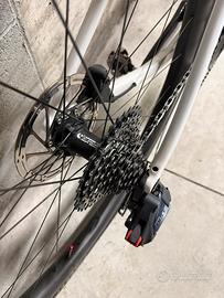 Vendo 3T Racemax Force D1 AXS 2x12 2024 in ottime condizioni, con upgrade ruote carbonio 3T Discus 45|40 LTD. Bici acquistata nuova, utilizzata con cura, nessuna caduta, nessun danno strutturale. Tutti i componenti originali e perfettamente funzionanti. Vendo per cambio di disciplina. Bici parzialmente pellicolata: foderi, piantone, pedivelle. Percorsi meno di 1500 km. Specifiche: ∙Telaio: Carbonio pre-preg unidirezionale ∙Forcella: 3T Fango RaceMax Carbon ∙Gruppo: SRAM Force D1 AXS 2x12 — piatti 46/33T ∙Freni: SRAM Force D1 AXS idraulici, rotore 160 mm ∙Ruote: 3T Discus 45|40 LTD Carbon 700c tubeless ready ∙Pneumatici: Pirelli Cinturato Gravel M 700c ∙Manubrio: 3T Superergo LTD Carbon ∙Attacco: 3T Apto Stealth ∙Taglia: 56 ∙Peso: ~8 kg Disponibile per visione e prova. Preferisco ritiro a mano. Spedizione possibile a carico dell’acquirente. Pagamento contanti o bonifico. Per info scrivere in privato.