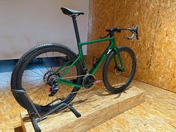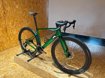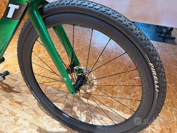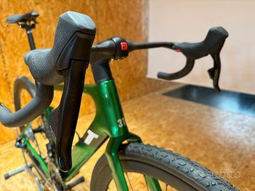 Bici nuova con telaio in misura 51 adatto per persone di altezza compresa tra i 167 ed i 174cm circa Telaio prodotto in Italia Gruppo cambio Sram Force/Rival AXS 2×12 (Comandi e cambio Sram Rival, Guarnitura, deragliatore e cassetta Sram Force) Corone 46/33 e cassetta 10/33 Ruote Syncros Capital 1.0 Carbon con canale da 25mm e profilo da 40mm Prezzo: 5900€ Non ritiriamo usati per la vendita di questa bici
