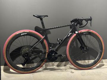 In vendita 3T Racemax Italia tg. 51 Bici con 2000km, interamente pellicolata Da fatturare e registrare garanzia a proprio nome -Gruppo Shimano GRX Di2 1x12 -Pacco pignoni Shimano XT 10-51 -Corona Alugear 48T -Ruote Zipp XPLR 303SW -Attacco manubrio 3T More 90mm -Manubrio 3T superergo 380mm -Gomme Panaracer con 300km
