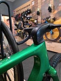 3T RACEMAX ITALIA RIVAL/FORCE AXS 1X12 DISCUS TG.56 USATO LISTINO 8999€ SCONTATA 4200€ La RaceMax Italia è pensata per i piloti e i corridori più esigenti per essere i più veloci su qualsiasi combinazione di asfalto, ghiaia e sterrato. La nuova Racemax è ancora più veloce grazie al passaggio pulito e interno dei cavi e al nuovissimo attacco manubrio aerodinamico in carbonio MORE. L’avvolgimento interno del filamento di 3T utilizza una combinazione di fibre ad alta resistenza/alta rigidità, combinate con l’iniezione di resina RTM. Fabbricato in Italia 3T Fango RaceMax Integrale con corona compatta 3T MinMax Integrale IS42/34 | IS47/38 (36 gradi) 100×12 anteriore – 142×12 posteriore Barra 3T Aeroghiaia LTD54&56: 42cm MORE integrale , 56: 100mm ATTACCO MANUBRIO 3T MORE INTEGRATO GUARNITURA SRAM FORCE CARBON LEVE CAMBIO SRAM RIVAL AXS RUOTE DISCUS 700C 4867