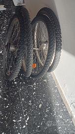 Come in foto, due ruote posteriori e due ruote anteriori. Tre hanno la camera d'aria buona