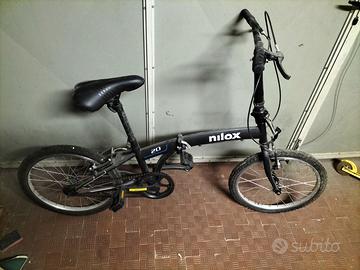 Una bici ripiegabile da camper/campeggio con il manubrio da sistemare.