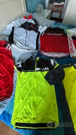 Vendo abbigliamento bici da stradada invernale e estivo in ottime condizioni e usata poco, giacca invernale Castelli a 50 euro, giacca invernale Specialized gialla 30 euro, giacca Specialized mezza stagione gialla e rossa 30 euro cadauna, magliette estive a 20 cadauna, salopette invernale Sportul gialla e rossa 30 euro cadauna, salopette estiva 15 euro, disponibile a far provare e vedere.