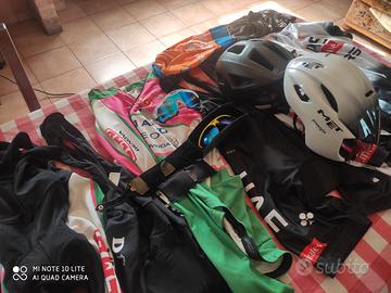 Vendo 5 pantaloncini imbottiti corti di cui uno lungo invernale due caschi due occhiali di cui uno con tre paia di lenti intercambiabili due paia di guanti tre casacche più magliette misura S/ M