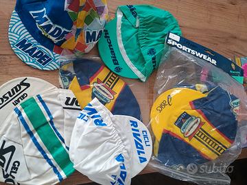nuove maglie fondo di magazzino cicli patelli , Raleigh campagnolo, magniflex cappellino originali bianchi , mercatone uno, cicli Rivola , mapei squadra corse Colnago tutto nuovo mai indossato originale dell epoca anni 70/80 prezzo singola maglia 130 trattabile cappellini 35