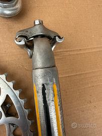 Accessori Campagnolo Super Record in ottime condizioni, pedali 70, reggisella 30, deragliatore posteriore 70, guarnitura 70, serie sterzo 30, movimento centrale Super Record 50, manettini 30.