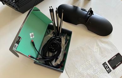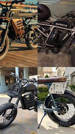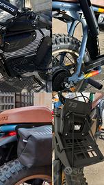 Accessori Originali per SUPER 73 , disponibili anche tutti i ricambi originali del marchio. Se avete bisogni di altri accessori e/o ricambi contattatemi pure. - Motore SUPER73 2000W ( Può erogare fino a 5KW con batteria da 60V ) - Batteria Originale 48V - Ammortizzatore anteriore e posteriore originale - Parafango FORTY CUSTOMS - Freni a disco idraulici MAGURA anteriori e posteriori - Cerchi con pneumatici BDGR VEETIRES , GRIZLY , e altri modelli 20x5 per andare su strada e sterrato - Sella in pelle singola o anche edizione lunga per 2 persone - Pedane posteriori originali SUPER73 per passeggero ed eventualmente anche le pedane Loomenade / Blur Boundaries per bambino/a davanti - Pannelli MOLLE posteriori BLURBOUNDARIES per borse laterali e altri oggetti a vostro piacimento. - Borse Chrome Industries laterali abbastanza capienti per includere i caricabatterie e altra roba - Specchietto retrovisore sx + dx BLURBOUNDARIES - Cestino centrale per eventuale seconda batteria e potete mettere altra roba - Indicatori di direzione LED Loomenade - Porta Canne da Pesca Loomenade frecce sacche specchio specchietti 20 x 5.0