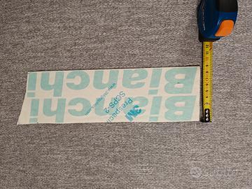 Adesivi telaio Bianchi nuovi colore celeste dimensioni circa 29 x 9 cm