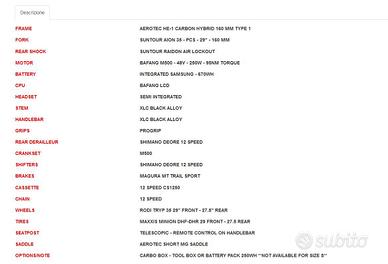 LINK DIRETTO: https://www.vianellibikes.com/Product/9389/aerotec-he1-carbon-hybrid-29275-tm-m500