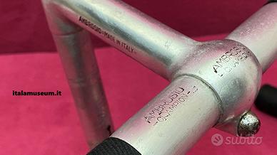 Kit manubrio piega corsa e pipa porta avanti Ambrosio Champion i9n condizioni perfette. Completo di espander e nastro in tela di cotone nuovo conservato d'epoca riposizionabile dopo aver inserito le leve. Posso a scelta inviare nastro come in foto mdi altro cvolore per legnano roma frejus bianchi etc. Misura totale in larghezza cm 40 , pipa attacco manubrio cm 11 , perfetto originale senza pieghe rotture o difetti occulti. Qualsiasi garanzia di nessun difetto tecnico/meccanico