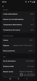 Vendo splendida Mtb Amflow PL Carbon del Febbraio 2026 in taglia L (per altezze da 170 a 185 cm), solo 2 mesi di vita, 127 km totali percorsi, 3 cicli di ricarica, immacolata, perfetta in ogni dettaglio, nessun segno, mai caduta, completamente pellicolata. Una bicicletta che non ha bisogno di presentazioni. Copertura totale della garanzia di casa madre. Batteria da 800 Wh, motore sorprendente e silenzioso, leggerissima, agile, bilanciata e divertente nella guida, dotata di caricabatteria veloce e di tutti gli accessori di serie, attualmente monta diversi upgrade (con possibilità di acquisto a parte), verrà fornita in configurazione originale (ad eccezione dell impianto frenante completo Gustav PRO di Magura che sostituisce i discreti Magura MT5 di serie). Segmento All Mountain/Enduro leggero. Vendo per passaggio ad Enduro aggressivo. Per chi volesse acquistarla dotata di FOX 38 kashima da 170 mm e FOX X2 kashima al posteriore aumentando di molto le prestazioni del mezzo la richiesta è di 6.500 euro non trattabili. Tutto rigorosamente nuovo. Ad oggi il miglior prezzo della bicicletta nuova scontata è di euro 5.900. Listino di 6.500 euro. Preferibile consegna a mano nei limitrofi di Como/Milano