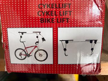 Vendo 3 appendi bici da soffitto mai montati ancora nella loro confezione. Vendo anche separatamente 10 € a pezzo.