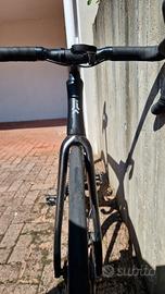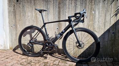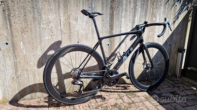 Allestita con cambio Shimano Ultegra Di2 12v, ruote in carbonio DT Swiss da 50mm (non marchiate), reggisella in carbonio, manubrio in carbonio da 420mm, attacco manubrio da 120mm. Possibilità di vendita con pedali Favero Assioma Duo.