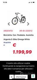 Bici elettrica argento 36wolt motore 250watt batteria 10amber integrata 9 km nuova completa di tutto vendo per inutilizzo 700trattabili