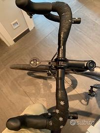 Sella repente OPPURE vendita possibile con manubrio in carbonio + attacco zip x Garmin con attacco Deda 100 mm + guarnitura red con potenziometro quarq 48/35 a EURO 3.300 Possibile vendita con ruote dtswiss prc 1400 carbonio con sovraprezzo a euro 4.500 Possibile vendita con manubrio canyon integrato 2700 euro