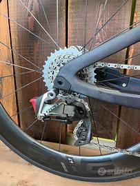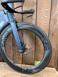 Telaio E-119 Tri - Tg. 54/56 Guarnitura Sram Red 12v - 170 mm Corona 48/36 Cassetta Sram Red 12v - 10/33 Deragliatore Anteriore Sram Red 12v AXS Cambio Sram Red 12v AXS Comandi Sram Red 12v AXS Cerchi ENVE SES 6.7 Pedali Non inclusi Anno 2023