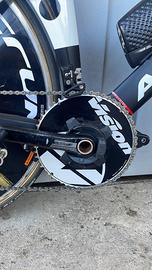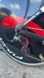 Vendo bici da crono Argon 18 E116 RIM taglia M ruote tubolari campagnolo Bora da 80 al anteriore e lenticolare fulcrum al posteriore gruppo SRAM force 11V monocorona ma fornisco insieme anche il deragliotore con rispettive corone per fare un 11X2 misuratore di potenza FSA. Levo freno di ricambio comprese.