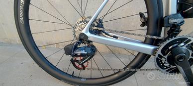 causa problemi alla schiena sono costretto a vendere la bici da corsa, la bici è di gennaio 2023 tenuta benissimo e sempre tagliandata, monta guarnitura con Power meter 48-35 SRAM Red, tutto il resto e sram force con cassetta 10-28 , freni a disco, il cambio è elettronico con batteria di scorta , manubrio integrato Deda Alanera e ruote in carbonio Spada bike TIVON 38 leggerissime..la bici pesa 7.8kg, sella prologo dimension...Taglia M-L 55