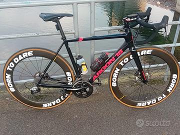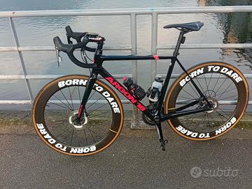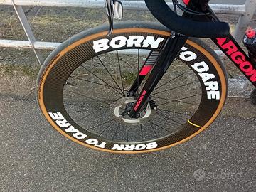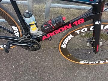 bici da corsa di colore nera e rosso argon 18 gallium disc cs montata sram rival 11 v mecanico ruote in carbonio ad alto profilo mavic slr taglia 54M ACETTO scambio con altre bici di pari valore e taglia