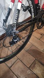 - gruppo SRAM apex, con freni rim (pattini appena cambiati) e cambio 10v con pignoni 11/28